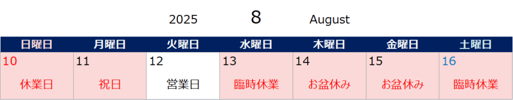 お盆休みのお知らせ